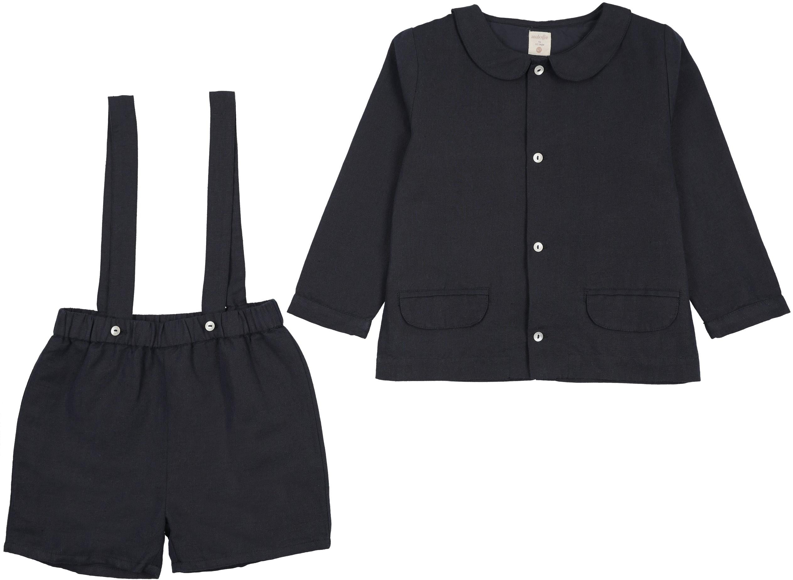 Analogie by Lil Legs Embroidered Linen Collection Boys Suit Outfit - SLST - Navy / 2T is backordered and will ship as soon as it is back in stock.