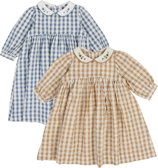 Analogie by Lil Legs Gingham Collection Girls 3/4 Sleeve Dress - GDQ - Golden / 9 is backordered and will ship as soon as it is back in stock.
