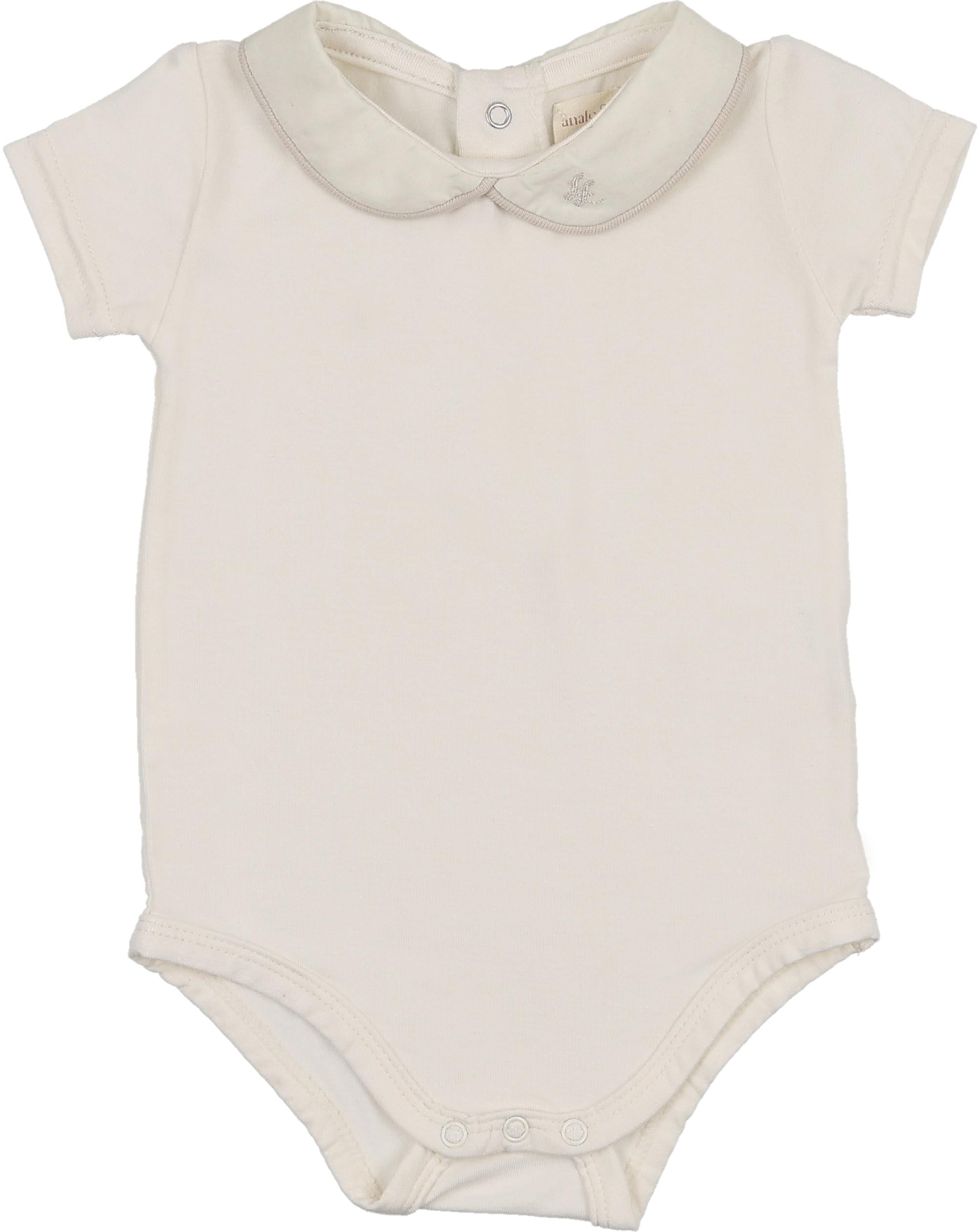 Analogie by Lil Legs Signature Collection Baby Boys Girls Peter Pan Piping Bodysuit - PPOP - Cream / 9 Months is backordered and will ship as soon as it is back in stock.