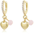 Tiny Gem Girls Gold and Pink Hanging Heart Huggie Back Earring - TG3004