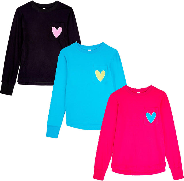 Memoi Teens Girls Heart Graphic Trimmed Pocket Long Sleeve T-Shirt - MKC-107 - Hot Pink / 16 is backordered and will ship as soon as it is back in stock.