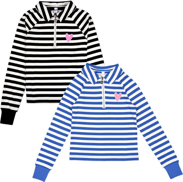 Memoi Teens Girls Striped Mini-Ribbed Quarter Zip Long Sleeve T-Shirt - MKC-108 - Blue / 20 is backordered and will ship as soon as it is back in stock.