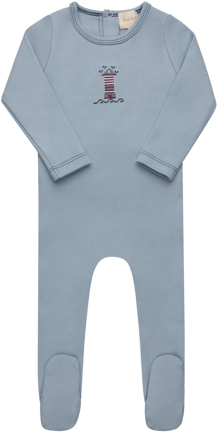 Aurora Baby Boys Girls Cross Stitch Collection Cotton Footie - ASS26-006 - Blue / 6 Months is backordered and will ship as soon as it is back in stock.