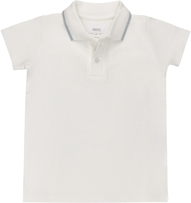 Aurora Boys Short Sleeve Polo Shirt - ASS26-0065 - Ivory/Blue / 4T is backordered and will ship as soon as it is back in stock.