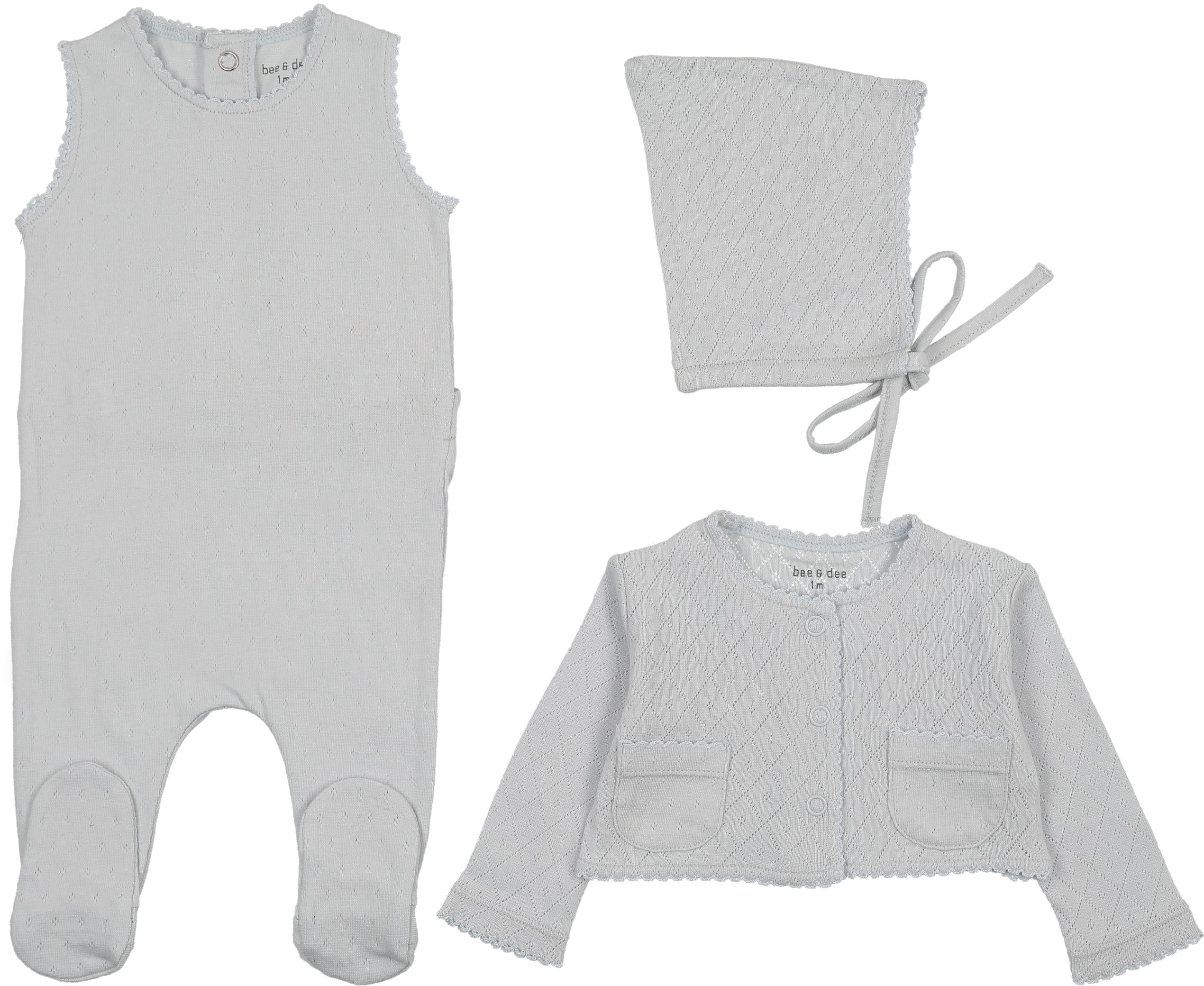 Bee & Dee Baby Boys Girls Double Diamond Cotton Footie, Cardigan & Bonnet Set - KDDO