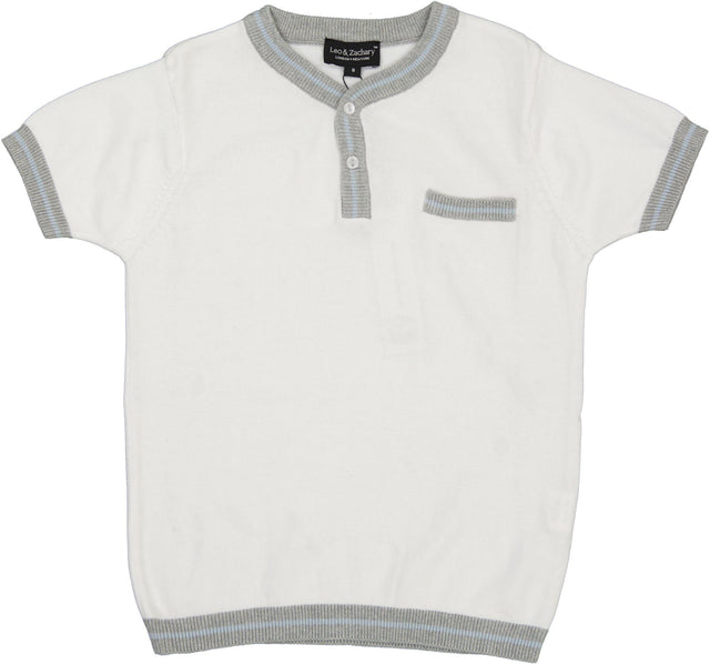 Leo & Zachary Boys Short Sleeve Sweater - BERNARD - White / 2 is backordered and will ship as soon as it is back in stock.